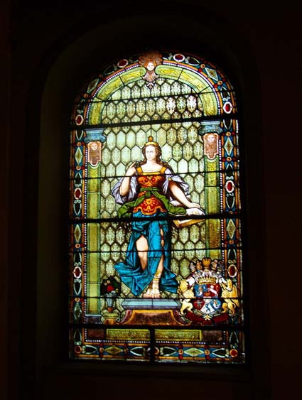Címer a nagybecskereki volt megyeháza lépcső-házának vitrázsán